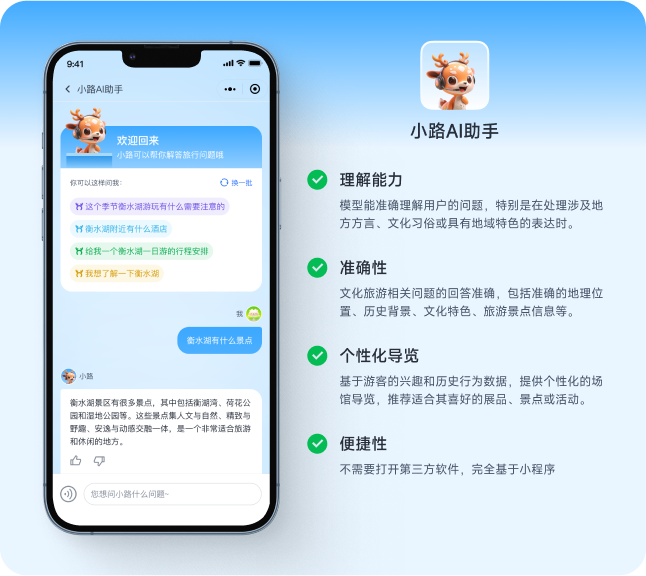 AI文旅行業(yè)模型是一款綜合性人工智能應(yīng)用,旨在提升旅游體驗(yàn)和優(yōu)化內(nèi)容創(chuàng)作。基于大模型生成式智能問答、個性化伴游助手、行文助手(標(biāo)題取名、文章潤色、文章摘要、關(guān)鍵詞提取)、圖像識別、文轉(zhuǎn)語音等。